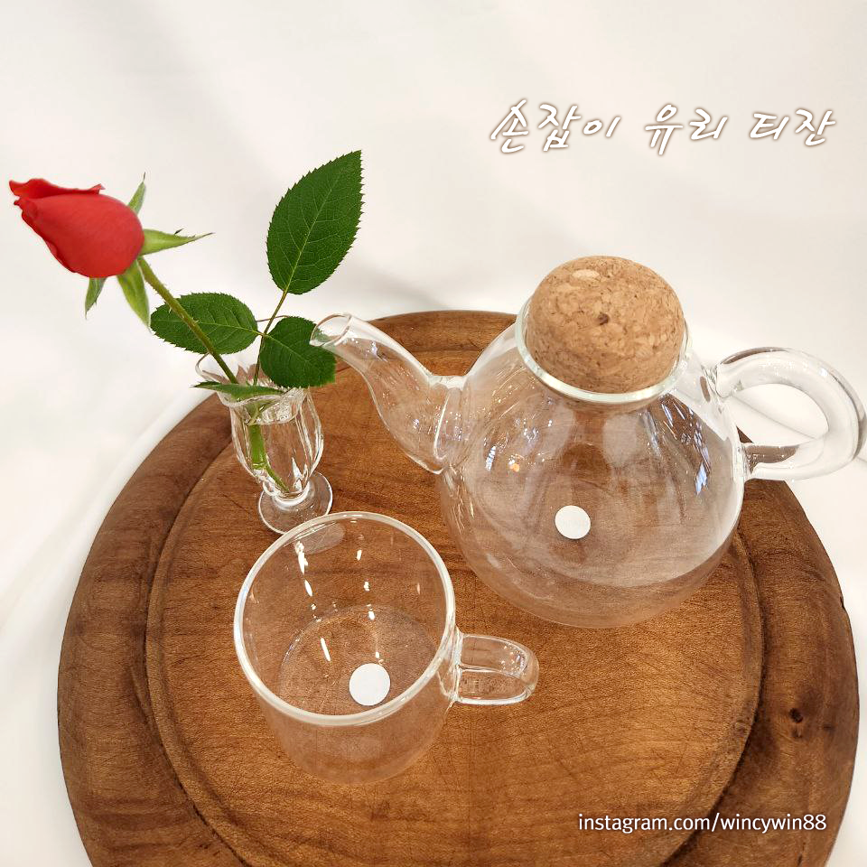 손잡이가 있어 편한 유리 티잔입니다.
